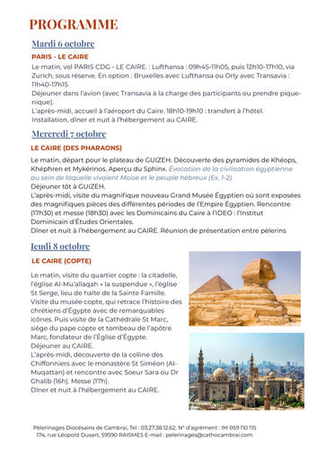 Programme des pèlerinages