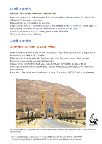 "Sur les pas de Moïse, des Pères du désert, de l'Église copte"
