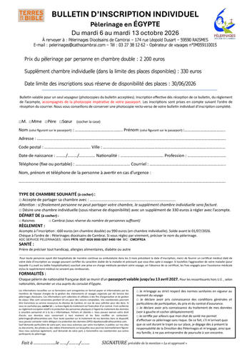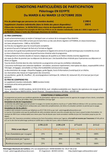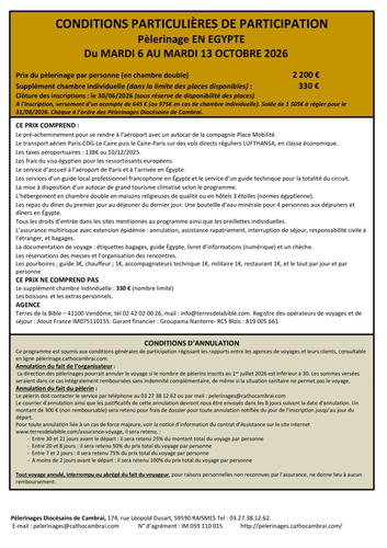 EGYPTE - Date limite d'inscription 30/06