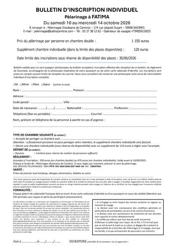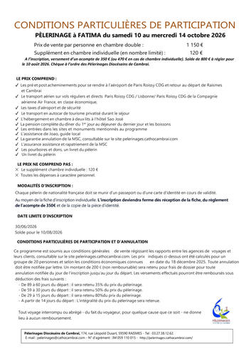 FATIMA - Date limite d'inscription 30/06