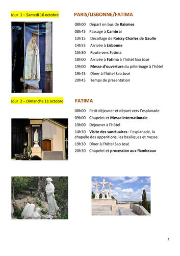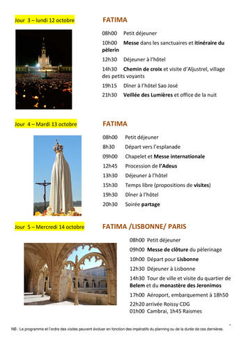 Programme des pèlerinages
