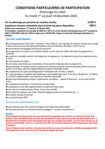 Vous trouverez ci-joint le programme du pèlerinage au Laos.